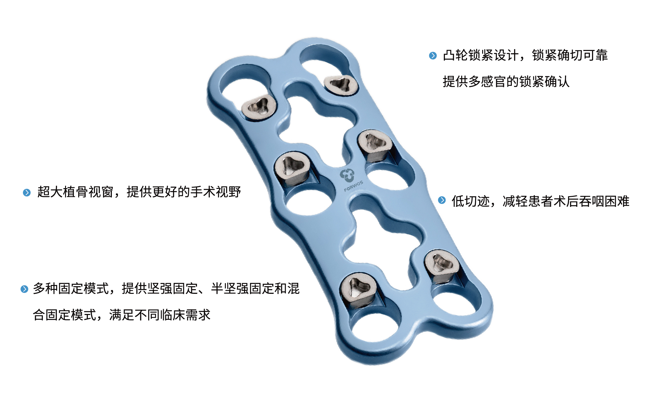 適用于頸椎骨折、椎體切除、退行性病變、解剖變異、脫位手術(shù)時(shí)頸椎前路內(nèi)固定,用于椎體切除手術(shù)時(shí)應(yīng)配合椎間融合器械使用。