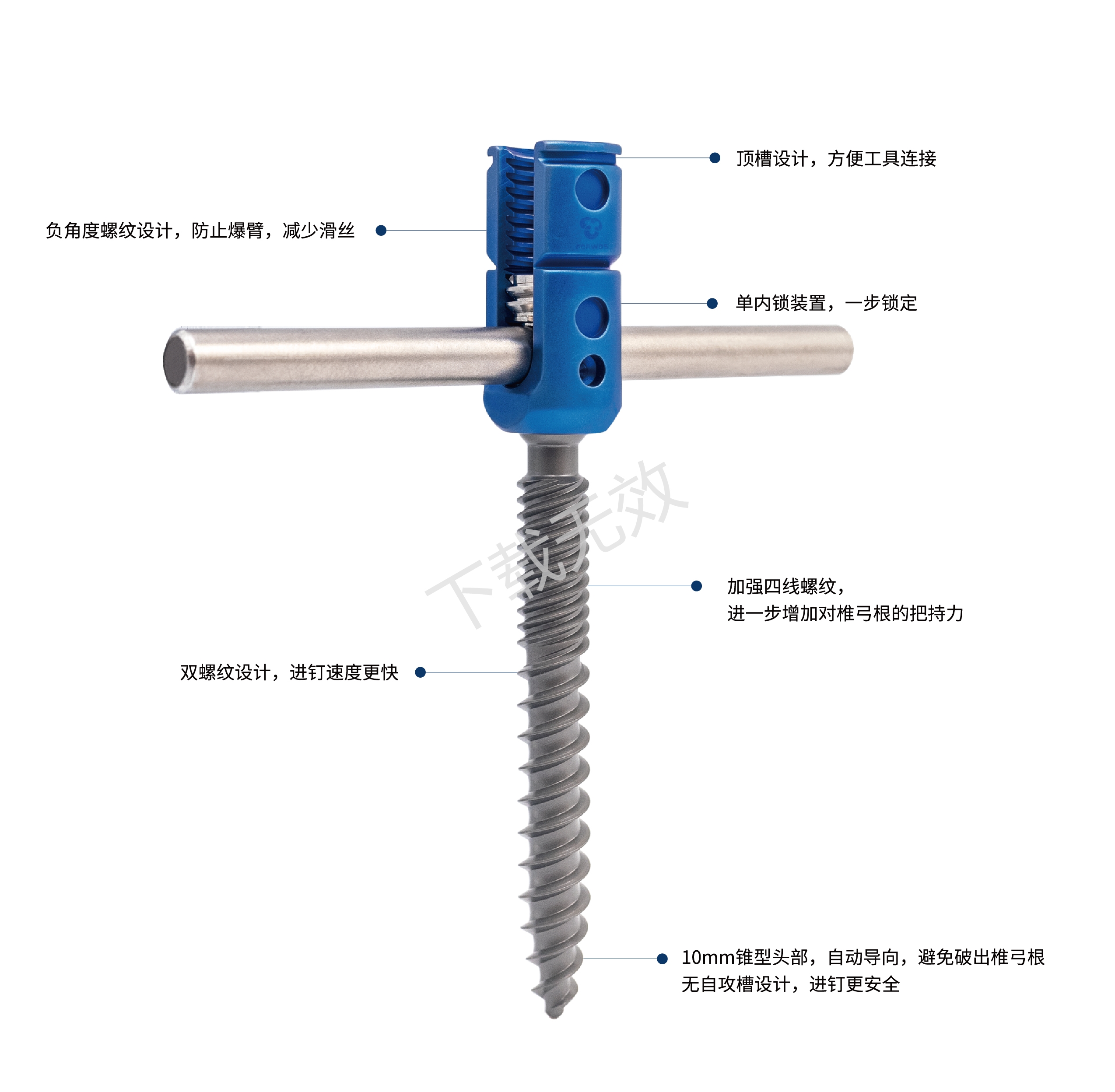 3、加強四線螺紋,進一步增加了對椎弓根的把持力;