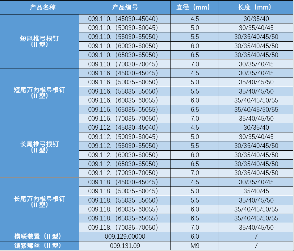 胸腰椎釘棒內固定系統由椎弓根釘、長尾椎弓根釘、短尾椎弓根釘、微創萬向椎弓根釘、棒、橫連裝置、 鎖緊螺帽、固定塊和金屬鉤等組成。適用于脊柱胸腰椎骨折、滑脫、退行性變、畸形、椎間盤突出、椎管狹窄等內固定。