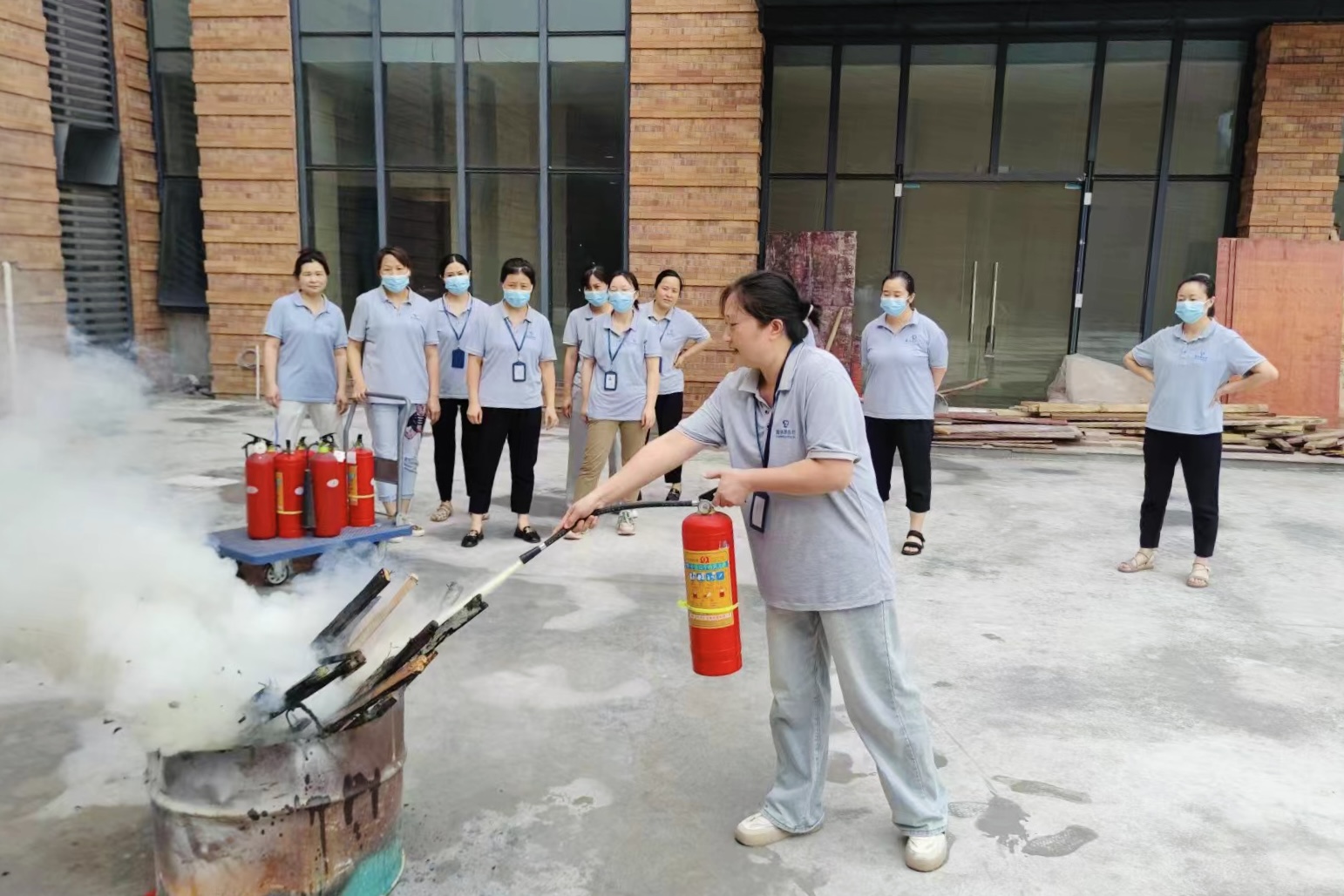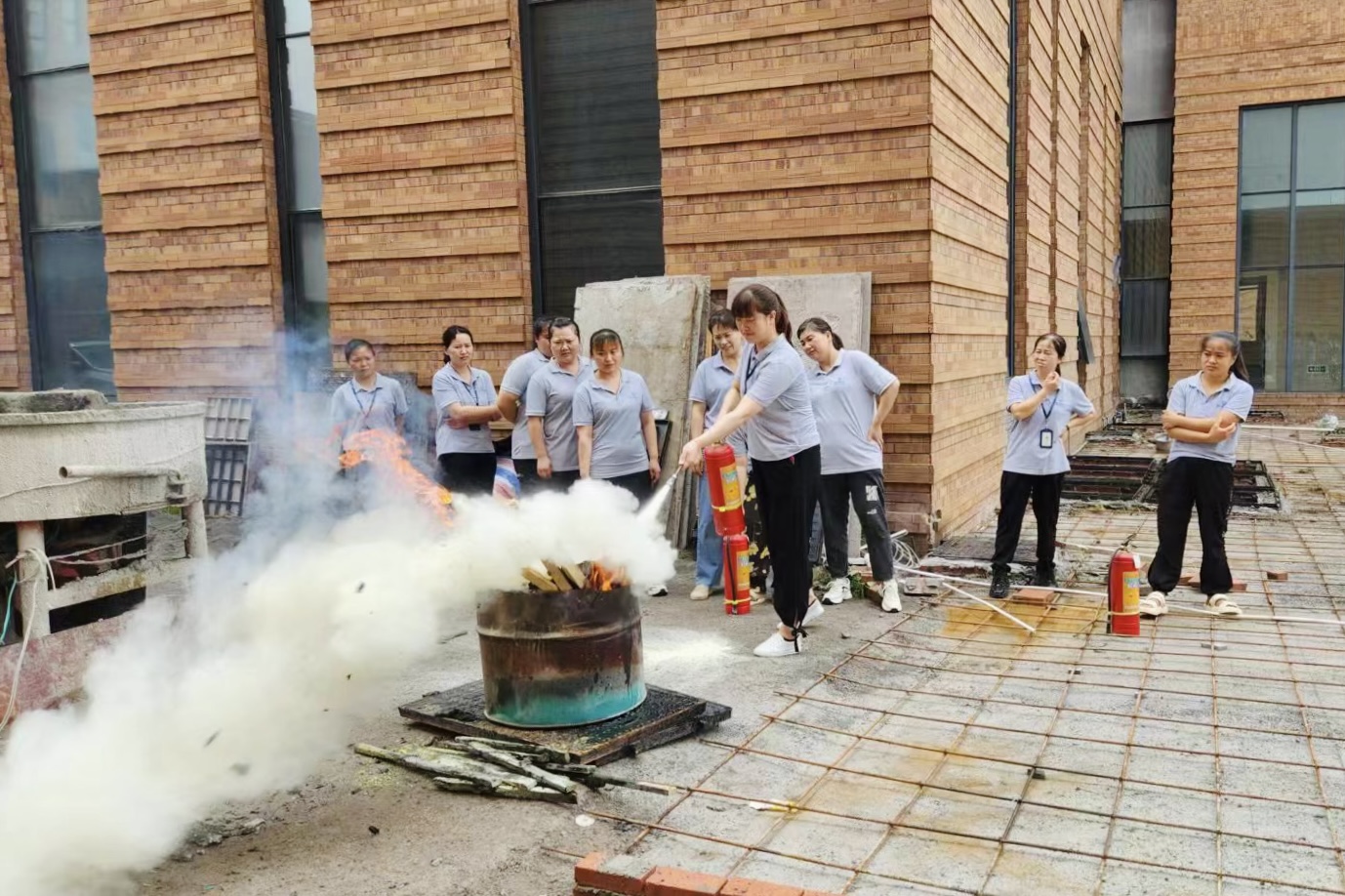 此次演習強調了預防火災的重要性,重申了員工參與消防安全培訓的重要性,詳細講解了滅火器使用方法,并讓員工在現場逐一使用滅火器進行滅火,做到“在場人員個個實操,人人會使用滅火器”。